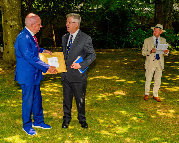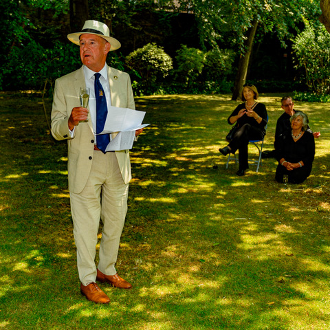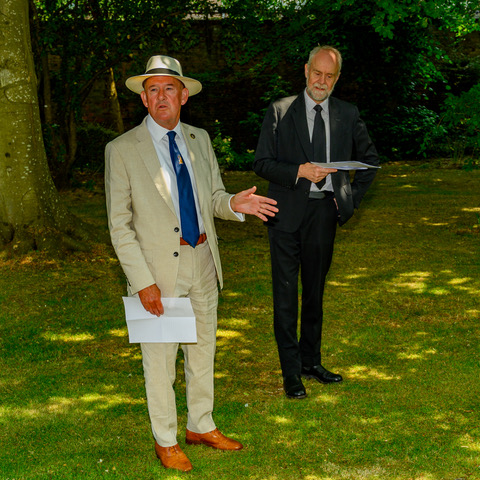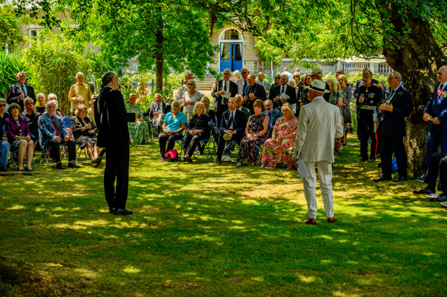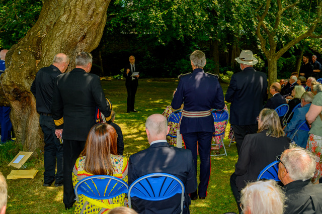 HM Lord Lieutenant of Hampshire then unveiled the memorial stone and joined those attending for refreshments held in Admiralty House Gardens where the Second Sea Lord’s generosity towards the 1805 Club gave us permission for their use.