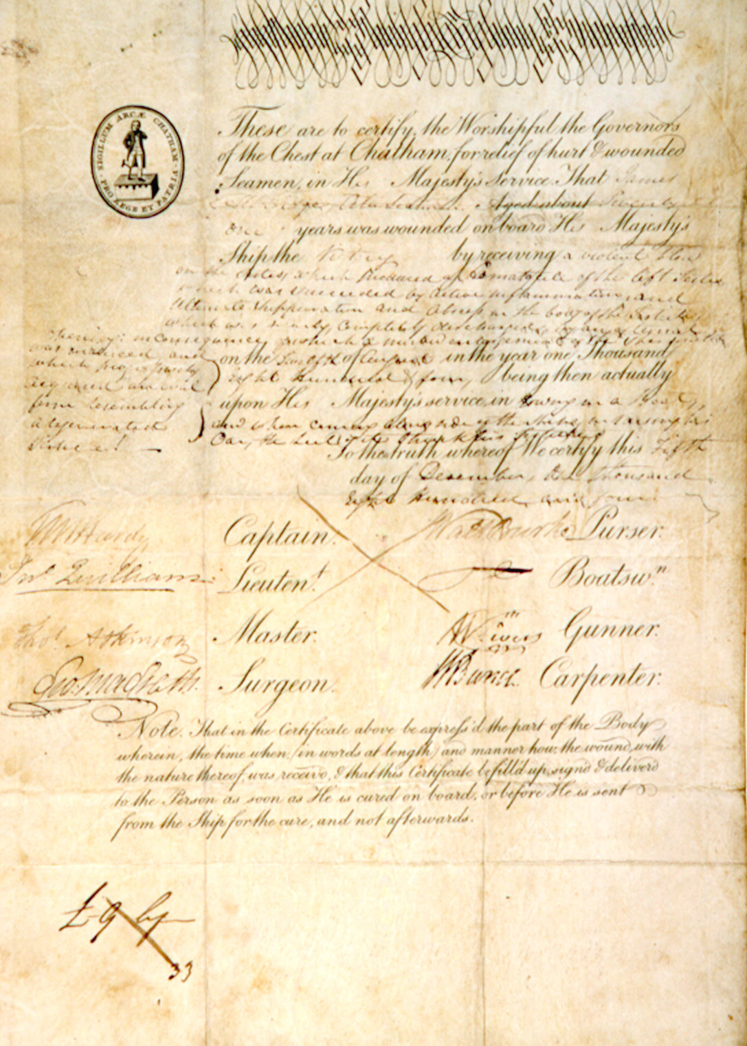 Pensions for permanent disablement or grants to wounded ratings were paid by the Chatham Chest, on production of a certificate known as a smart ticket. The fund came under the management of the Greenwich hospital in 1803.