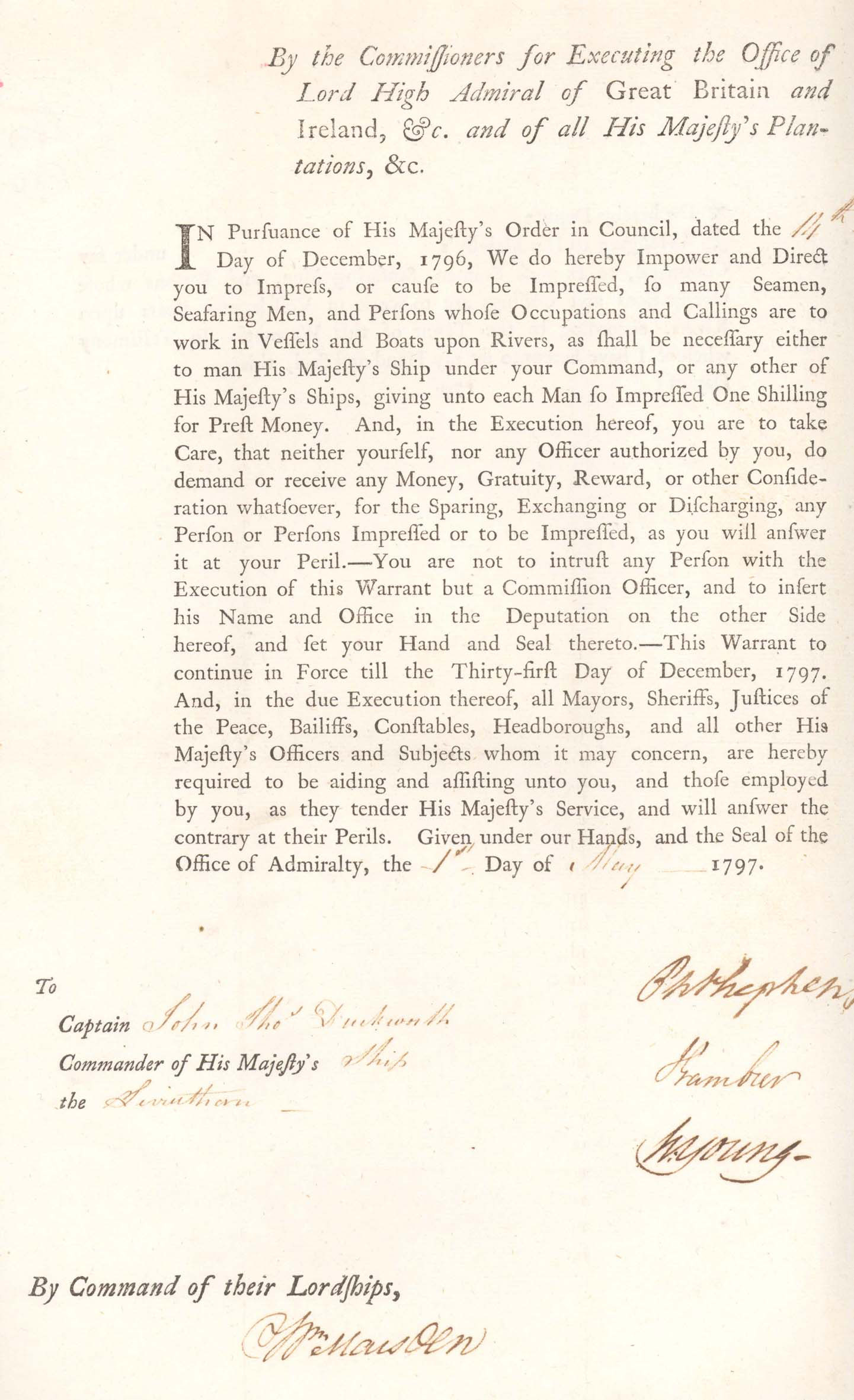 Seamen. For men the age in 1805 is calculated from the age given when they joined the ship. Where the age is shown for an officer it is obtained from other sources, often the Lieutenant's Passing Certificate