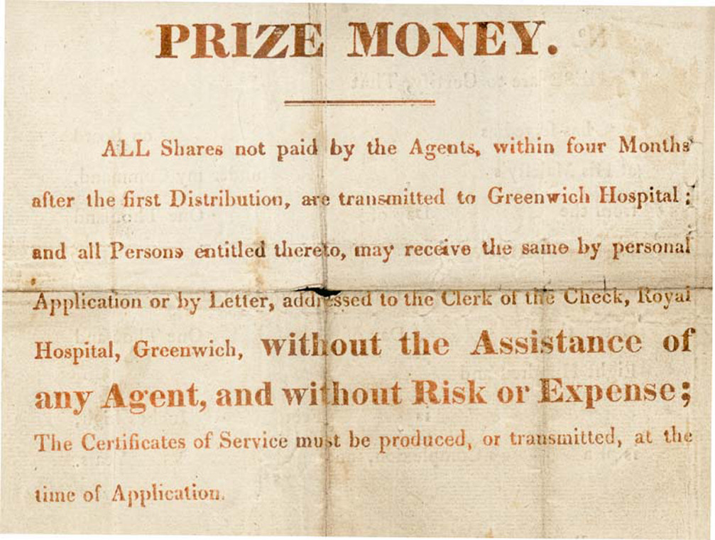 After a battle or the capture of an enemy ship each man on board was entitled to a share of the Prize Money which was based on the nominal value of the ships captured and Head Money which was calculated from the number of men and guns on board the captured ships.