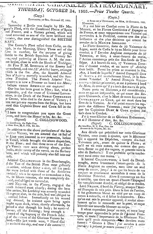 After the battle she was all but a wreck but was sufficiently repaired in Gibraltar to sail home on the 3rd of November carrying the body of Nelson.