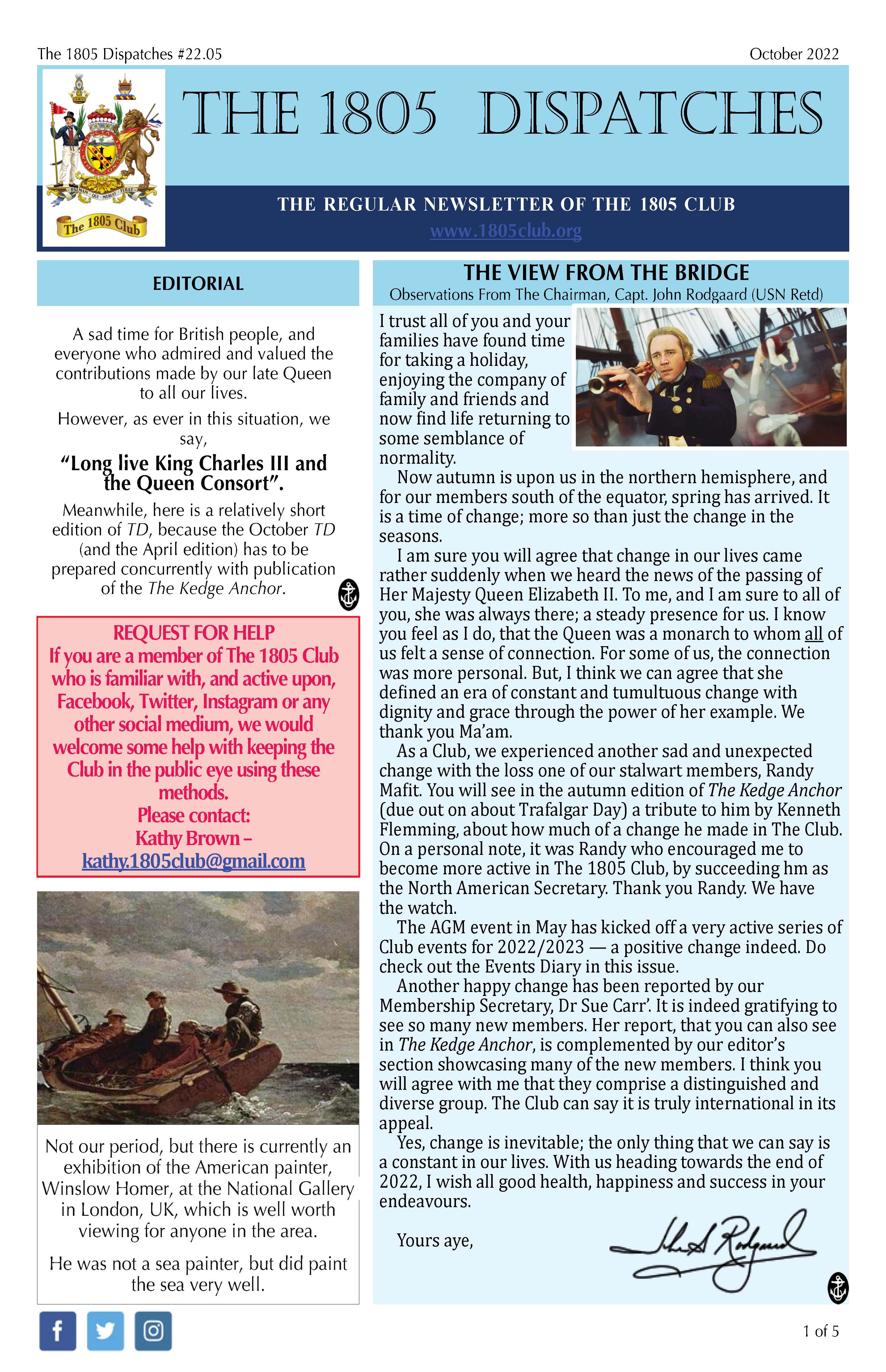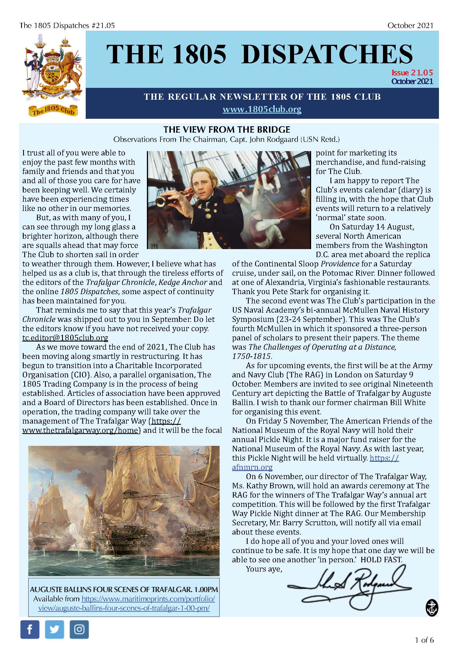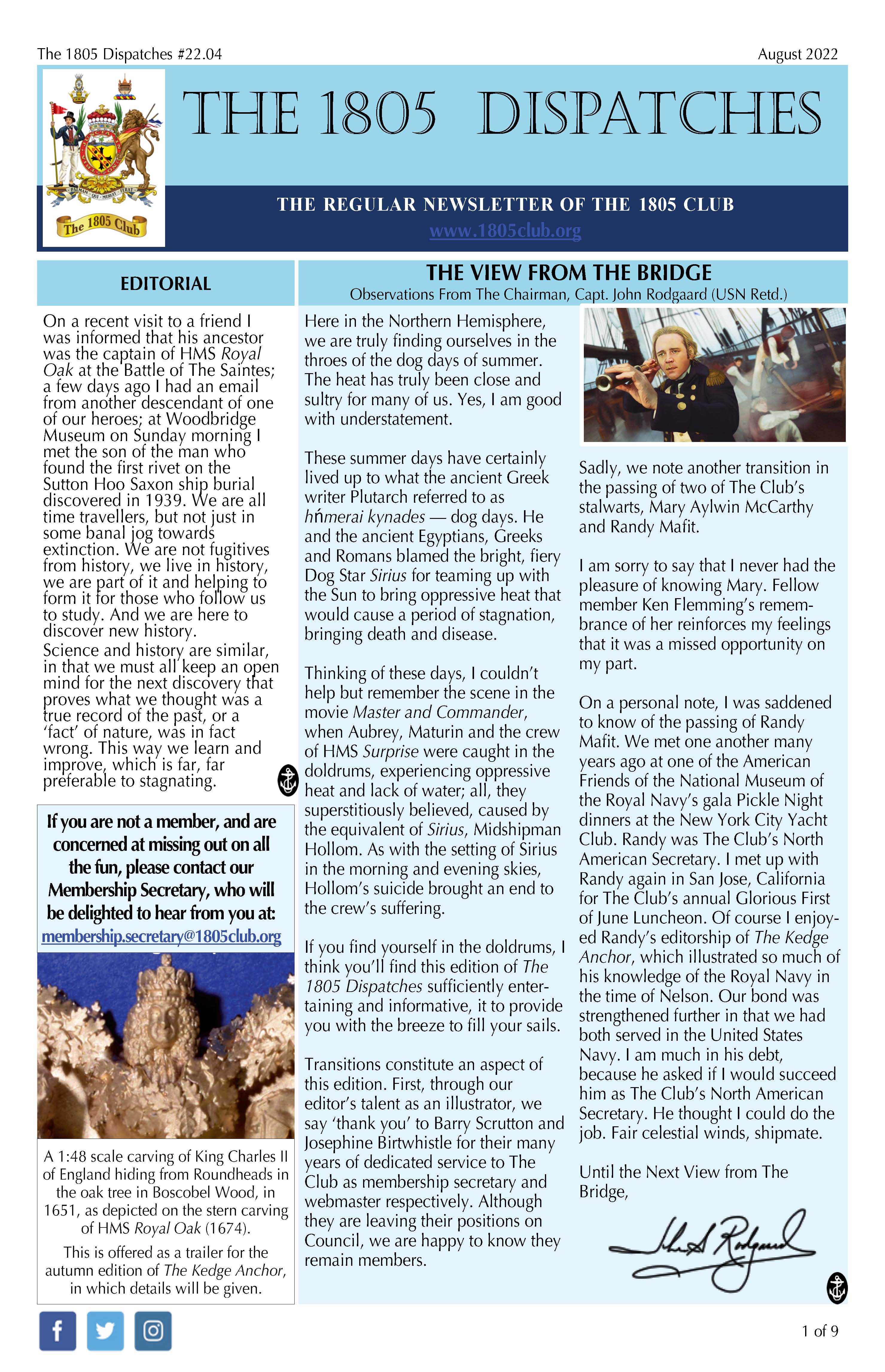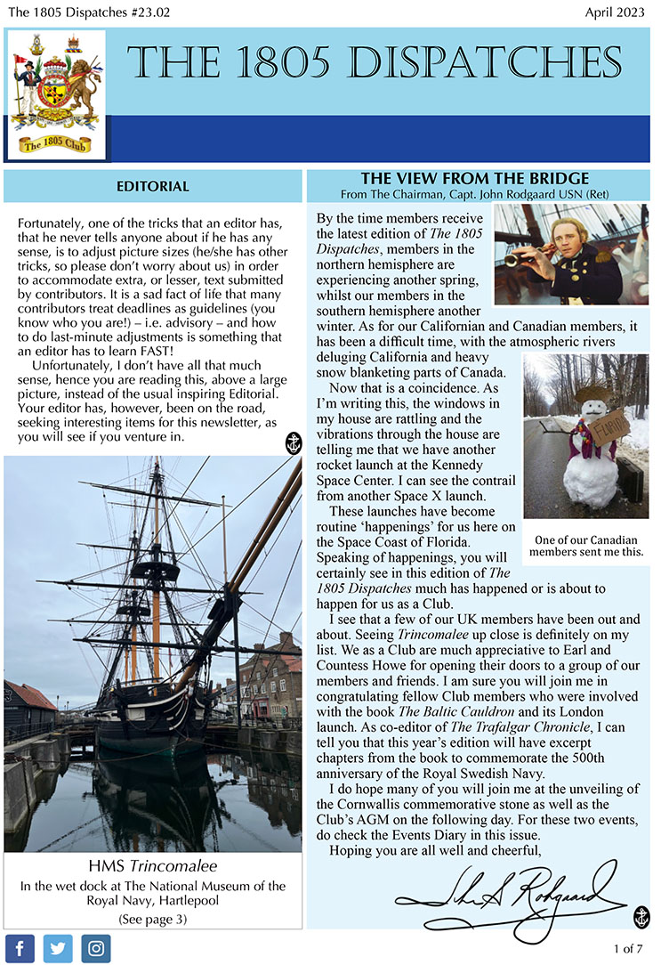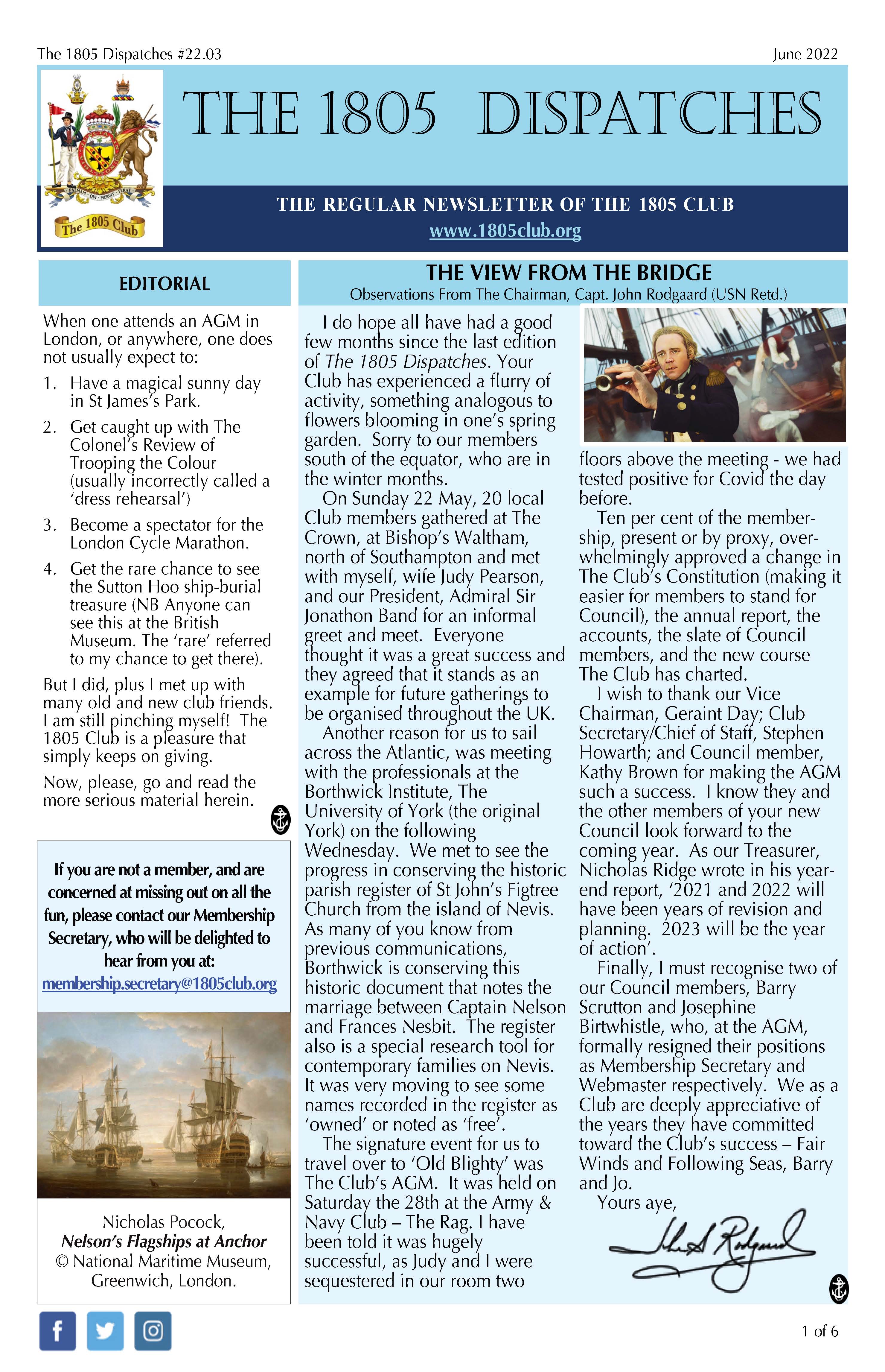 Regular updates from The 1805 Club’s Chairman. See the archive.