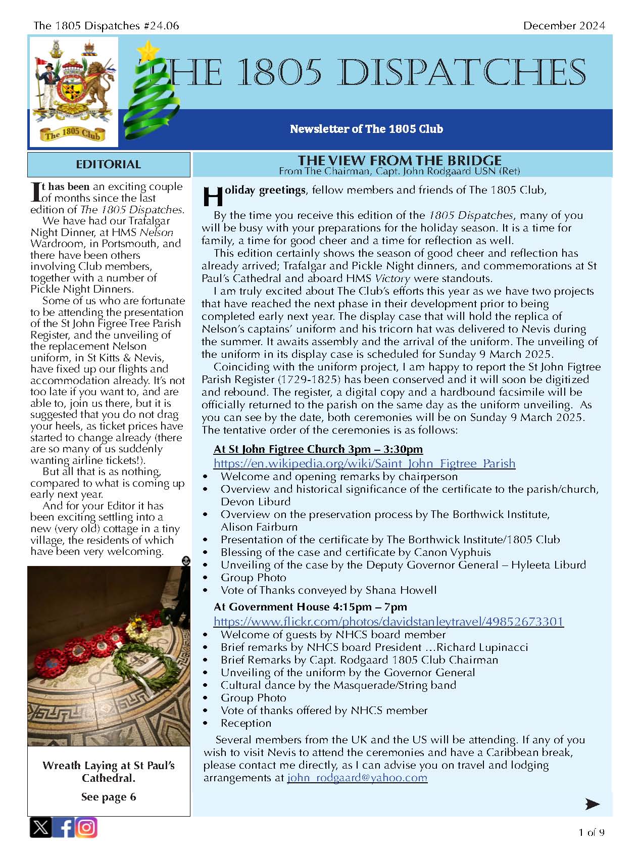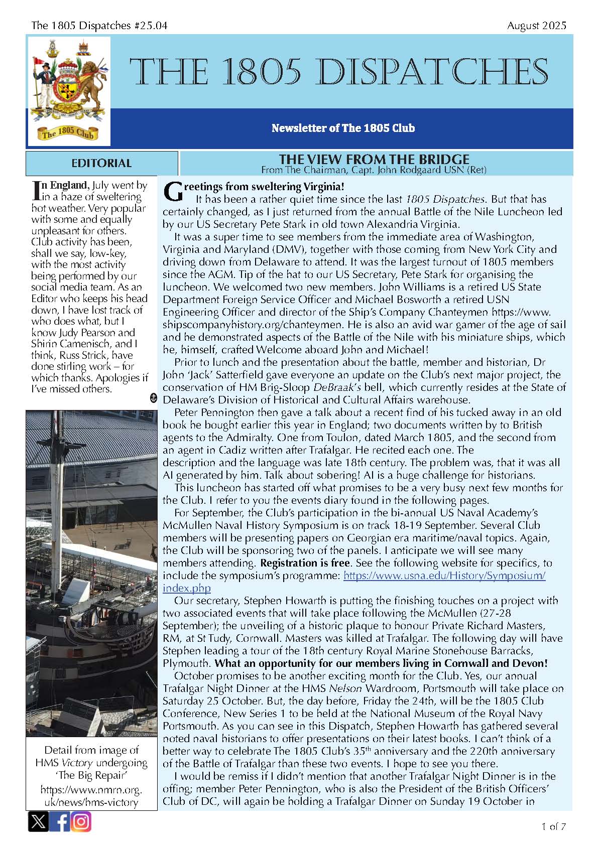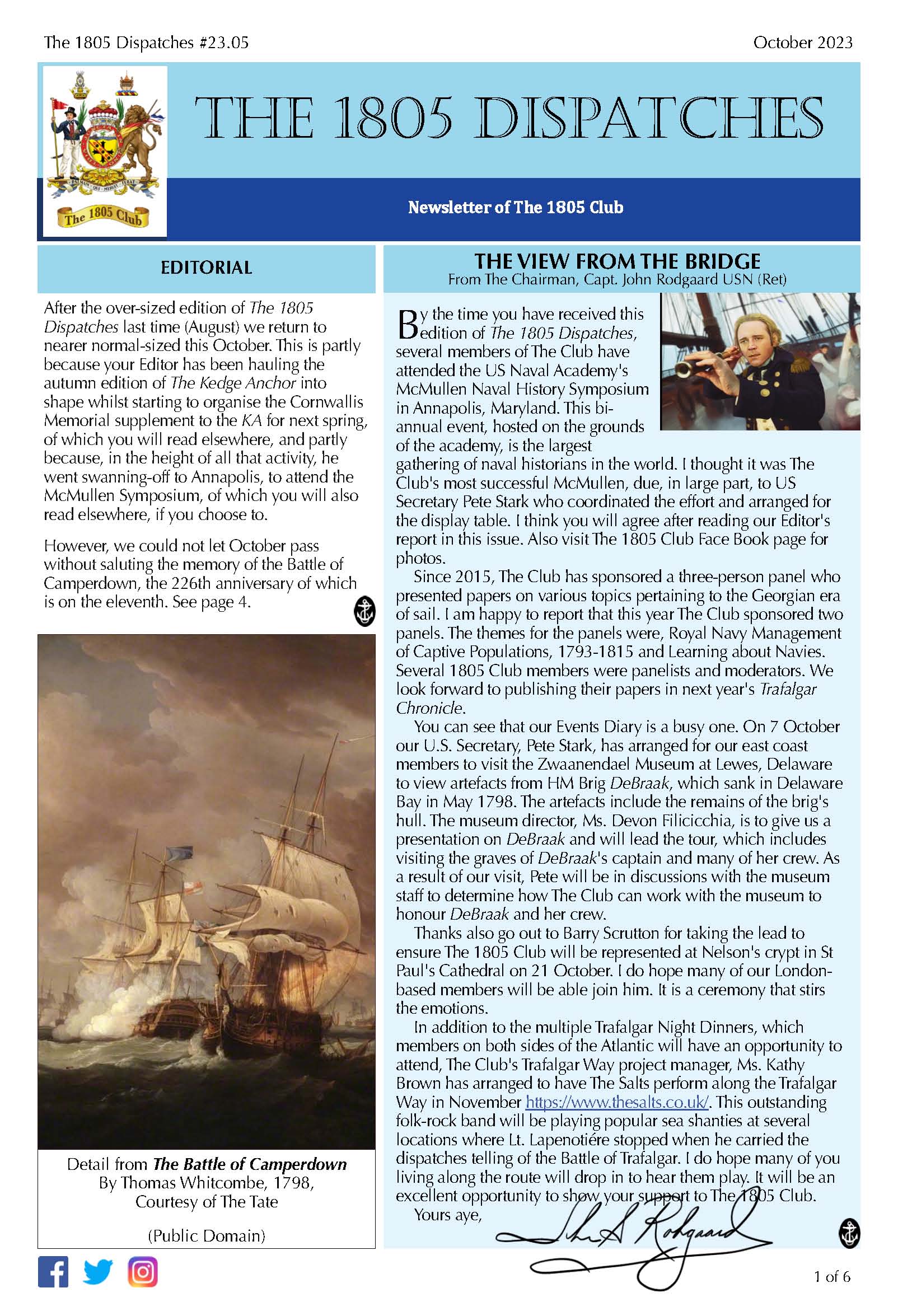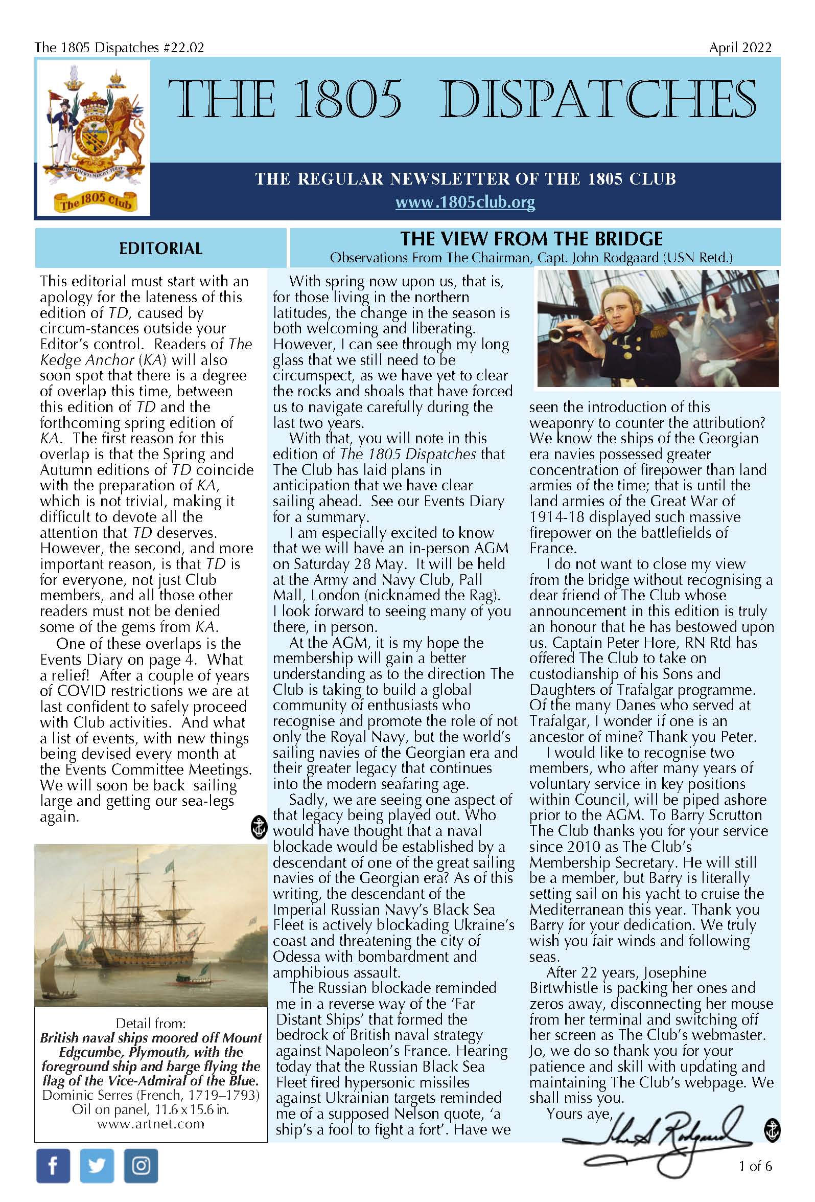 Regular updates from The 1805 Club’s Chairman. See the archive.