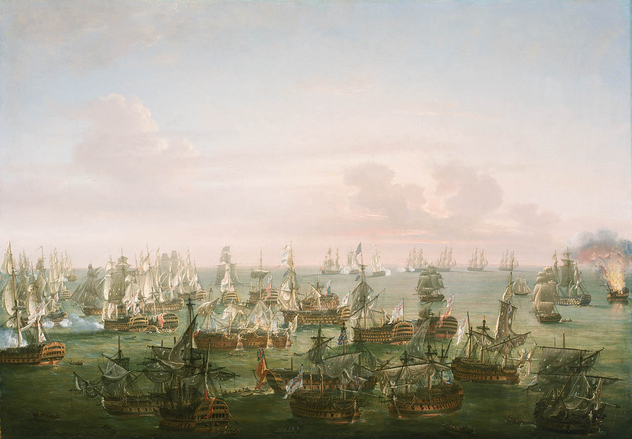 ‘Trafalgar – the end of the day’, engraving after Nicholas Pocock. Spartiate can be seen engaging Neptuno on the horizon.