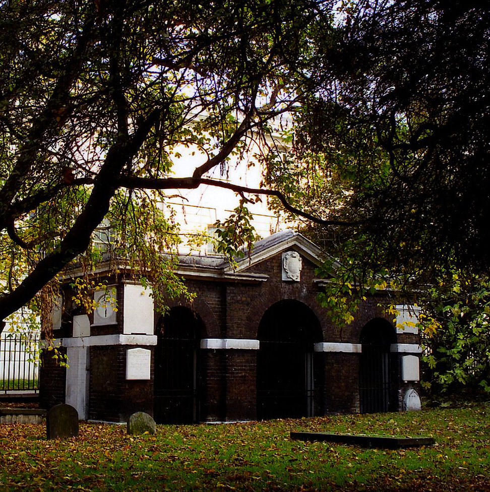 Description: The Mausoleum is a detached brick building in the grounds of Devonport House, Greenwich. The entrance to the vault is now bricked up. A plaque has been fixed to the external wall of the Mausoleum.