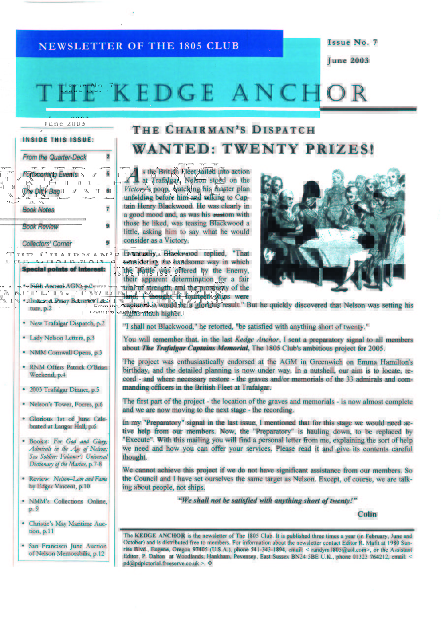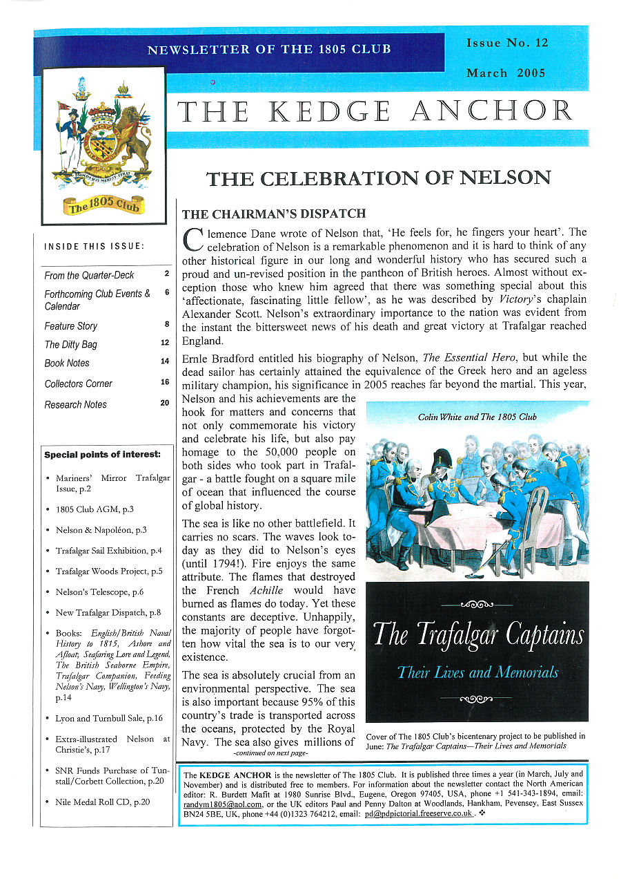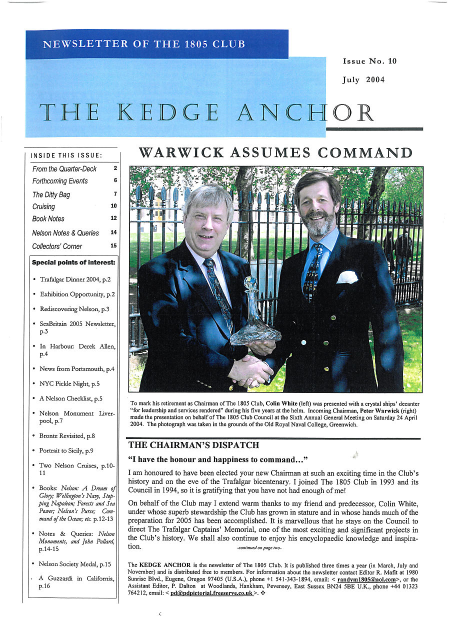 Regular updates from The 1805 Club’s Chairman. See the archive.