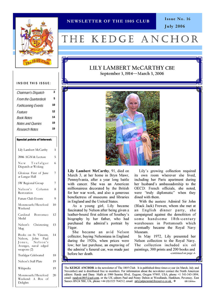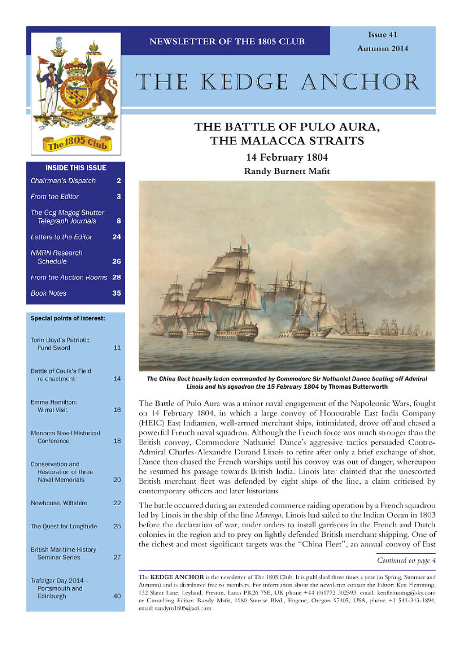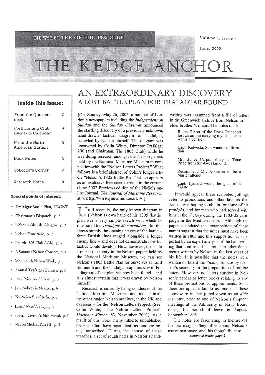 Regular updates from The 1805 Club’s Chairman. See the archive.