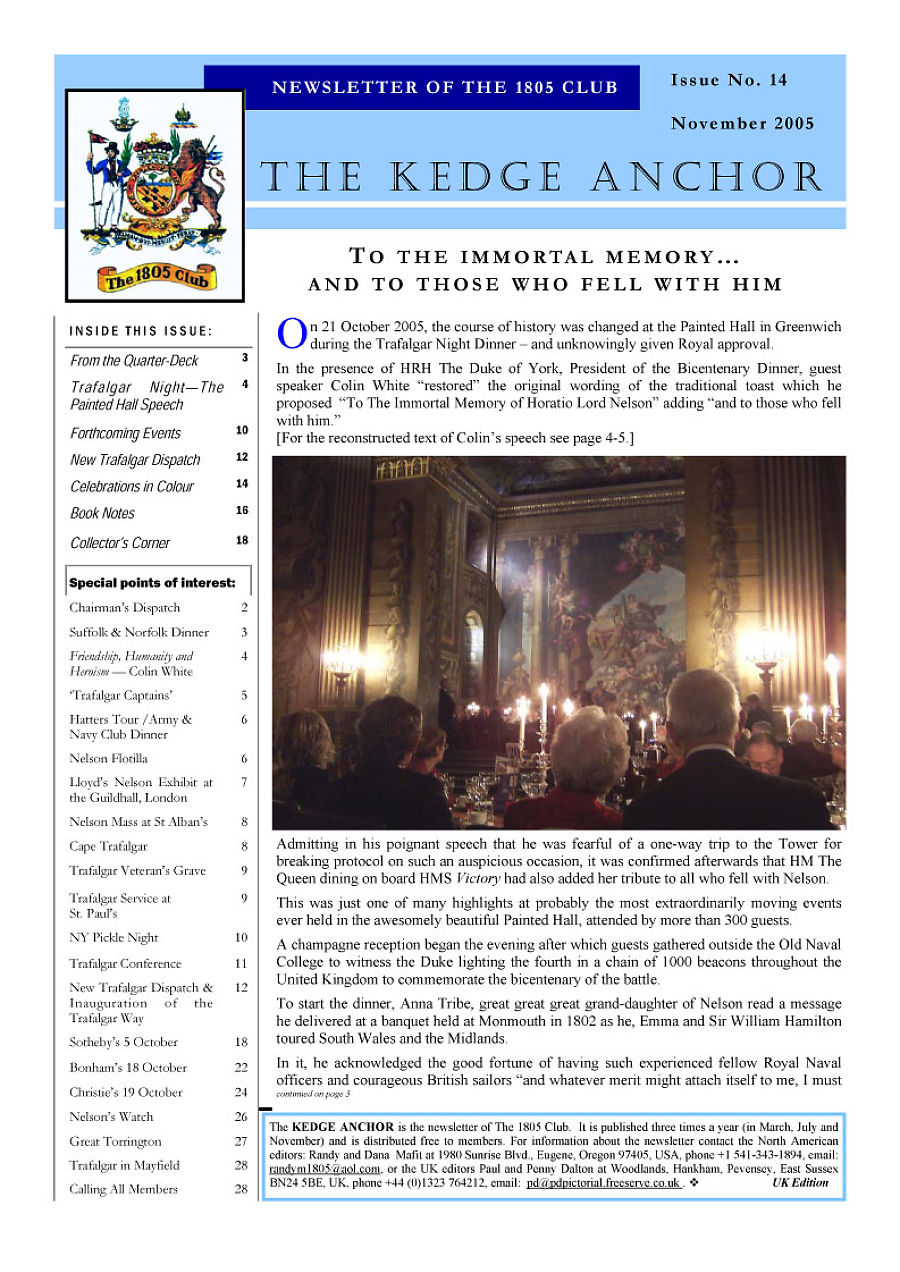 The 1805 Club celebrates its fourteenth Trafalgar Night dinner at Newhouse
