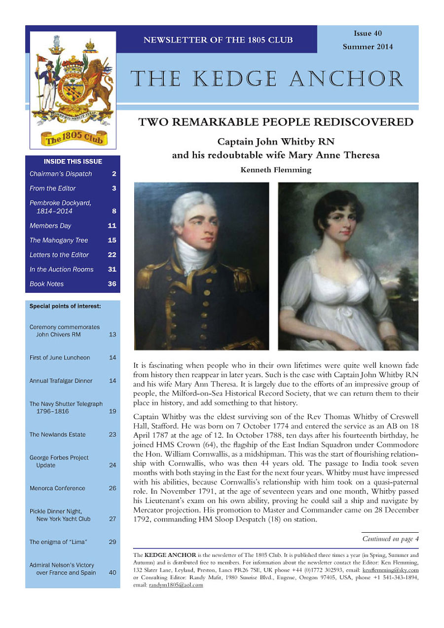 Two remarkable people rediscovered – Captain John Whitby RN and his redoubtable wife Mary Anne Theresa
