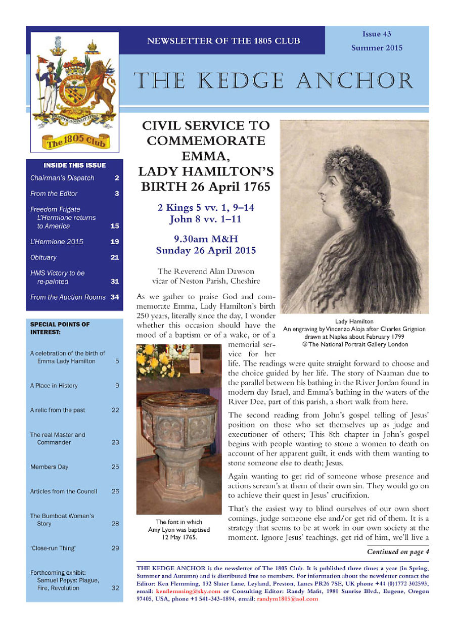 Civil service to commemorate Emma, Lady Hamilton’s Birth 26 April 1765