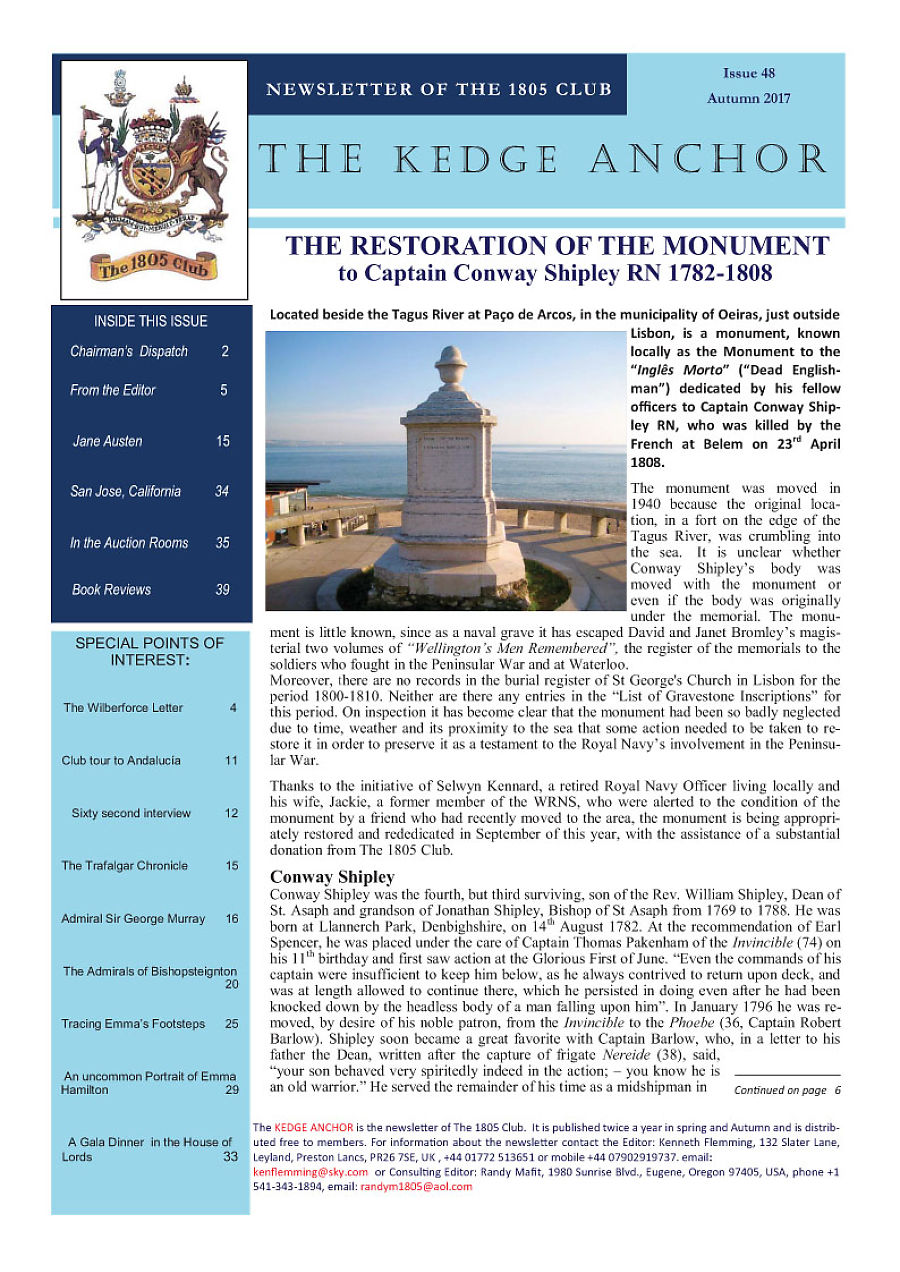 Update on the restoration of the monument to Captain Conway Shipley RN 1782–1808