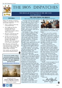 The 1805 Dispatches #22.03 June 2022 1 of 6 THE REGULAR NEWSLETTER OF THE 1805 CLUB www.1805club.org THE 1805 DISPATCHES THE VIEW FROM THE BRIDGE Observations From The Chairman, Capt. John Rodgaard (USN Retd.) I do hope all have had a good few months since the last edition of The 1805 Dispatches. Your Club has experienced a flurry of activity, something analogous to flowers blooming in one’s spring garden. Sorry to our members south of the equator, who are in the winter months. On Sunday 22 May, 20 local Club members gathered at The Crown, at Bishop’s Waltham, north of Southampton and met with myself, wife Judy Pearson, and our President, Admiral Sir Jonathon Band for an informal greet and meet. Everyone thought it was a great success and they agreed that it stands as an example for future gatherings to be organised throughout the UK. Another reason for us to sail across the Atlantic, was meeting with the professionals at the Borthwick Institute, The University of York (the original York) on the following Wednesday. We met to see the progress in conserving the historic parish register of St John’s Figtree Church from the island of Nevis. As many of you know from previous communications, Borthwick is conserving this historic document that notes the marriage between Captain Nelson and Frances Nesbit. The register also is a special research tool for contemporary families on Nevis. It was very moving to see some names recorded in the register as ‘owned’ or noted as ‘free’. The signature event for us to travel over to ‘Old Blighty’ was The Club’s AGM. It was held on Saturday the 28th at the Army & Navy Club – The Rag. I have been told it was hugely successful, as Judy and I were sequestered in our room two floors above the meeting - we had tested positive for Covid the day before. Ten per cent of the membership, present or by proxy, overwhelmingly approved a change in The Club’s Constitution (making it easier for members to stand for Council), the annual report, the accounts, the slate of Council members, and the new course The Club has charted. I wish to thank our Vice Chairman, Geraint Day; Club Secretary/Chief of Staff, Stephen Howarth; and Council member, Kathy Brown for making the AGM such a success. I know they and the other members of your new Council look forward to the coming year. As our Treasurer, Nicholas Ridge wrote in his yearend report, ‘2021 and 2022 will have been years of revision and planning. 2023 will be the year of action’. Finally, I must recognise two of our Council members, Barry Scrutton and Josephine Birtwhistle, who, at the AGM, formally resigned their positions as Membership Secretary and Webmaster respectively. We as a Club are deeply appreciative of the years they have committed toward the Club’s success – Fair Winds and Following Seas, Barry and Jo. Yours aye, Nicholas Pocock, Nelson’s Flagships at Anchor © National Maritime Museum, Greenwich, London. When one attends an AGM in London, or anywhere, one does not usually expect to: 1. Have a magical sunny day in St James’s Park. 2. Get caught up with The Colonel’s Review of Trooping the Colour (usually incorrectly called a ‘dress rehearsal’) 3. Become a spectator for the London Cycle Marathon. 4. Get the rare chance to see the Sutton Hoo ship-burial treasure (NB Anyone can see this at the British Museum. The ‘rare’ referred to my chance to get there). But I did, plus I met up with many old and new club friends. I am still pinching myself! The 1805 Club is a pleasure that simply keeps on giving. Now, please, go and read the more serious material herein. EDITORIAL If you are not a member, and are concerned at missing out on all the fun, please contact our Membership Secretary, who will be delighted to hear from you at: membership.secretary@1805club.org