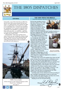 1 of 7 April 2023 The 1805 Dispatches #23.02 THE 1805 DISPATCHES THE VIEW FROM THE BRIDGE From The Chairman, Capt. John Rodgaard USN (Ret) By the time members receive the latest edition of The 1805 Dispatches, members in the northern hemisphere are experiencing another spring, whilst our members in the southern hemisphere another winter. As for our Californian and Canadian members, it has been a difficult time, with the atmospheric rivers deluging California and heavy snow blanketing parts of Canada. Now that is a coincidence. As I’m writing this, the windows in my house are rattling and the vibrations through the house are telling me that we have another rocket launch at the Kennedy Space Center. I can see the contrail from another Space X launch. These launches have become routine ‘happenings’ for us here on the Space Coast of Florida. Speaking of happenings, you will certainly see in this edition of The 1805 Dispatches much has happened or is about to happen for us as a Club. I see that a few of our UK members have been out and about. Seeing Trincomalee up close is definitely on my list. We as a Club are much appreciative to Earl and Countess Howe for opening their doors to a group of our members and friends. I am sure you will join me in congratulating fellow Club members who were involved with the book The Baltic Cauldron and its London launch. As co-editor of The Trafalgar Chronicle, I can tell you that this year’s edition will have excerpt chapters from the book to commemorate the 500th anniversary of the Royal Swedish Navy. I do hope many of you will join me at the unveiling of the Cornwallis commemorative stone as well as the Club’s AGM on the following day. For these two events, do check the Events Diary in this issue. Hoping you are all well and cheerful, One of our Canadian members sent me this. HMS Trincomalee In the wet dock at The National Museum of the Royal Navy, Hartlepool (See page 3) Fortunately, one of the tricks that an editor has, that he never tells anyone about if he has any sense, is to adjust picture sizes (he/she has other tricks, so please don’t worry about us) in order to accommodate extra, or lesser, text submitted by contributors. It is a sad fact of life that many contributors treat deadlines as guidelines (you know who you are!) – i.e. advisory – and how to do last-minute adjustments is something that an editor has to learn FAST! Unfortunately, I don’t have all that much sense, hence you are reading this, above a large picture, instead of the usual inspiring Editorial. Your editor has, however, been on the road, seeking interesting items for this newsletter, as you will see if you venture in. EDITORIAL