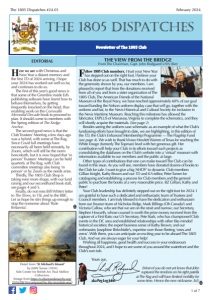 7 of 7 February 2024 The 1805 Dispatches #24.01 THE 1805 CLUB Founded in 1990, the Club: ・Promotes research into and education about the Royal Navy, merchant maritime service and other state navies of the same era; and ・Promotes and engages in the preservation of monuments and memorials relating to the Royal Navy and seafaring people of the later sailing-navy era; and ・Organises relevant cultural, historical and social events. The Club is charity No. 1201272, registered in England and Wales. Individuals desiring further information may contact: Stephen Howarth, Hon. Club Secretary, The 1805 Club Nottingham, UK Email: secretary@1805club.org Telephone: 07973 717618 For a membership application form please contact: Dr Sue Carr, Hon. Membership Secretary, The 1805 Club London, UK Email: membership.secretary@1805club.org Or: Harold E (Pete) Stark, Hon US Secretary, The 1805 Club Annapolis, MD, USA Email: the.americas.membership.secretary@1805club.org Telephone: 410-269-9760 (mobile) Or: Mark Billings, Hon Canadian Secretary, The 1805 Club Montreal, Quebec, Canada Email: canadian.membership.secretary@1805club.org Telephone: 1-514-296-1641 Peter Turner, Editor of The Kedge Anchor Aldeburgh, Suffolk, UK Email: ka.editor@1805club.org or p.t@gmx.com Telephone: 07903 251008 The Newsletter for Anyone Interested in The 1805 Club PURPOSE. The purpose of this newsletter is to support and advance the Club’s objectives. The newsletter provides anyone who is interested with brief items of news about the Club and its activities, in the hope that the it can help the Club attract wider interest in naval history and new members. Much of the content will be a précis of articles that will appear in The Kedge Anchor, the six-monthly club magazine. EDITORIAL POLICY. The Editor has full editorial responsibility for the newsletter. Views expressed in the newsletter are those of individual authors, unless claimed by the Editor. Articles which appear do not express the official position of The 1805 Club on any subject unless specifically noted as such. Content of contributions to the newsletter may be edited for grammar, space allocation, or to better serve the purpose of the newsletter. Contributors wishing to be alerted to editorial decisions should notify the Editor at the time that their contribution is submitted. Otherwise the submission will be published within the scope of the editorial policy. ISSUE AND COPY DATES The proposed issue dates for The 1805 Dispatches are: February, April, June, August, October and December. Anyone wishing to contribute an article or news item to the Editor for inclusion in the newsletter should do so by the middle of the month preceding the issue in which it is to be inserted. Any articles that are not time-specific can be submitted at any time, with a note advising the Editor of that fact. All copy is welcome, but not all copy may be used! Seafaring, afearing, farsing, fearing, feasing, fingers, fringes, serafin, afears, faaing, fainer, faines, farang, farina, faring, feigns, finers, finger, fraena, fraise, friges, fringe, infare, infers, naifer, safari, safing, afear, afire, faena, fagin, faine, fains, fanga, fangs, farse, fears, feign, feria, finer, fines, fires, frags, frena, fries, frigs, frise, ganef, grief, infer, infra, refis, reifs, safer, serif, snarf, afar, fags, fain, fair, fane, fang, fans, fare, fear, fegs, feis, feni, fern, fiar, fier, fine, fire, firn, frae, frag, frig, naif, neif, nief, nife, refi, reif, rife, safe, seif, serf. SHIP’S WORD WHEEL ANSWERS Sods opera – Ships’ concerts were arranged and performed by seamen of the Ship’s Operatic and Drama Society (SODS), and were often used to get one’s own back at officers and to settle old scores painlessly. Ashore it usually, and unfairly, applied to any poorly produced performance. NAVAL TERMS THAT HAVE ‘COME ASHORE’ EVENT DATE EVENT TITLE EVENT DESCRIPTION CLUB LEAD 10 Feb 24 Battle of Cape St Vincent Luncheon Alexandria, Va Pete Stark 24 Feb 24 Midshipman Dale Commemoration Ceremony St. George’s, Bermuda TBD 25 May 24 Club AGM and members Day AGM and Members Day at Army and Navy Club (The Rag) London - Expert lecturer will be Paddy Rogers, CE of Royal Museums Greenwich Stephen Howarth 28 May 24 Anglesey Abbey, Cambridgeshire Private view of 3 Solid Silver Patriotic Vases Stephen Howarth 1 Jun 24 Battle of the Glorious First of June Celebration of the 230th Anniversary of the Battle - at Langar Nottinghamshire Stephen Howarth Jul 24 Visit to Haslar RN Hospital and Bucklers Hard Club visit to these fascinating historical sites Stephen Howarth 3 Aug 24 Battle of the Nile Commemoration Luncheon or Dinner to commemorate the Battle of the Nile Pete Stark 2024 Return of St. John’s Figtree Parish Register, Nevis Ceremony jointly held by The Nevis Historical and Cultural Society and The 1805 Club Richard Lupinacci Stephen Howarth John Rodgaard Pete Stark 2024 Presentation of Nelson’s captains uniform Ceremony jointly held by The Nevis Historical and Cultural Society and The 1805 Club Benedict Ryan John Rodgaard Pete Stark 19 Oct 2024 Trafalgar Night Dinner TND - HMS NELSON Wardroom Portsmouth Stephen Howarth EVENTS DIARY This is a schedule of some forthcoming 1805 Club events, so please put the dates in your own diaries. The Events Committee are discussing additions to this calendar on a monthly basis.
