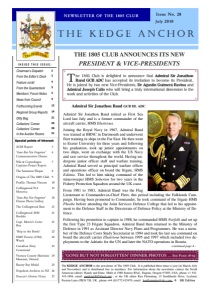 Special points of interest: THE 1805 CLUB ANNOUNCES ITS NEW PRESIDENT & VICE-PRESIDENTS The KEDGE ANCHOR is the newsletter of The 1805 Club. It is published three times a year (in March, July and November) and is distributed free to members. For information about the newsletter contact the North American editors: Randy and Dana Mafit at 1980 Sunrise Blvd., Eugene, Oregon 97405, USA, phone +1 541343-1894, email: randym1805@aol.com ; or the UK editor Ken Flemming, 15 Southlands Drive, Leyland, Preston Lancs PR26 7SJ, UK , phone +44 (0)1772 433970, email: kenflemming@sky.com . UK Edition Admiral Sir Jonathon Band GCB DL ADC Admiral Sir Jonathon Band retired as First Sea Lord last July and is a former commander of the aircraft carrier, HMS Illustrious. Joining the Royal Navy in 1967, Admiral Band was trained at BRNC in Dartmouth and underwent fleet training in ships in the Far East. He then went to Exeter University for three years and following his graduation, took up junior appointments on two ships, went on exchange with the US Navy and saw service throughout the world. Having undergone junior officer staff and warfare training, Admiral Band served as principal warfare officer and operations officer on board the frigate, HMS Eskimo. This led to him taking command of the minesweeper HMS Soberton for two years in the Fishery Protection Squadron around the UK coast. From 1981 to 1983, Admiral Band was the Flag Lieutenant to Commander-in-Chief Fleet, this period including the Falklands Campaign. Having been promoted to Commander, he took command of the frigate HMS Phoebe before attending the Joint Services Defence College that led to his appointment to the Defence Staff in the Directorate of Defence Policy at the Ministry of Defence. Following his promotion to captain in 1988, he commanded HMS Norfolk and set up the first Type 23 Frigate Squadron. Admiral Band then returned to the Ministry of Defence in 1991 as Assistant Director Navy Plans and Programmes. He was a member of the Defence Costs Study Secretariat in 1994 and took his last sea command on board the aircraft carrier Illustrious between 1995 and 1997 which included two deployments to the Adriatic for the UN and later the NATO operations in Bosnia. -continued page 4 - T he 1805 Club is delighted to announce that Admiral Sir Jonathon Band GCB ADC has accepted its invitation to become its President.. He is joined by two new Vice-Presidents, Dr Agustin Guimerá Ravina and Admiral Joseph Callo who will bring a truly international dimension to the work and activities of the Club. ‘GONE BUT NOT FORGOTTEN’ DINNER PHOTOS … See Page 18-19 Chairman’s Dispatch 2 From the Editor’s Desk 3 Feature contd 4 From the Quarterdeck 5 Forthcoming Events 12 Regional Group Reports 14 Ditty Bag 21 Collectors’ Corner 25 Collectors’ Corner 28 In the Auction Rooms 31 News from Council 6 Members’ Forum Notes 5 INSIDE THIS ISSUE: AGM Report 5 ‘Gone But Not Forgotten’ Commemorative Dinner 6 Nile & Copenhagen Captains Project Report 7 The Saumarez Plaque 8 Origins of The 1805 Club 9 Profile: Thomas Vincent 10 Collingwood Pt.2 Menorca 15 ‘Gone But Not Forgotten’ Dinner Photo Gallery 18 The Collingwood Bust 21 Collingwood 2010 Booklet 21 Capt. Morris’s Letter Box 21 ‘Ship in the Bottle’ 22 HMS Victory (1744) Wreck 22 Canadian Navy Centennial 23 Ventura County Maritime Museum, Oxnard 24 Bantry Bay Medal 25 Napoleon Archives in NZ 26 Duncan’s Glorious Victory 27 THE KEDGE ANCHOR NEWSLETTER OF THE 1805 CLUB Issue No. 28 July 2010