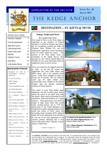 Special points of interest: Chairman’s Dispatch 2 From the Quarterdeck 4 News from Council 5 Forthcoming Events 9 Feature Story contd 15 Ditty Box 32 Collectors’ Corner 36 Book Notes 37 In the Auction Rooms 41 INSIDE THIS ISSUE: Reception for Nile & Copenhagen Captains’ Memorial 5 Council Away-Day 6 HMS Trafalgar Figurehead 7 Victory Medal Weekend 8 The Wyllie Weekend 9 The Emma Exhibition 10 Vis Celebrates Hoste/ Lissa 11 Adm Sir Alexander Ball 12 No.1 Smithery, Chatham 13 NHCS & Robt. Abrahams 17 St.Kitts/Nevis Travel Guide 15 HMS Solebay At Nevis 26 HMS Victory in the News 29 Brennan Carves Victory 30 NHS Launches Shipshape Network 32 HMS Colossus Revisited 34 NMM Ofer Wing Report 34 HMS Somerset Resurfaces 36 A Nelson’s Flintlock 38 THE KEDGE ANCHOR NEWSLETTER OF THE 1805 CLUB Issue No. 30 March 2011 The KEDGE ANCHOR is the newsletter of The 1805 Club. It is published three times a year (in March, July and November) and is distributed free to members. For information about the newsletter contact the North American editors: Randy and Dana Mafit at 1980 Sunrise Blvd., Eugene, Oregon 97405, USA, phone +1 541343-1894, email: randym1805@aol.com ; or the UK editor Ken Flemming, 15 Southlands Drive, Leyland, Preston Lancs PR26 7SJ, UK , phone +44 (0)1772 433970, email: kenflemming@sky.com. UK Edition DESTINATION— ST. KITTS & NEVIS Nelson, Nesbit and Nevis By Captain Peter Hore The island of Nevis in the West Indies is important to any narrative of Nelson because it is where he married, and where, by his sycophancy towards the Duke of Clarence (later William IV), and his enthusiastic application of the Navigation Acts he nearly ended his career. His actions in the West Indies while in command of the frigate Boreas also account for why Nelson fretted ashore in Norfolk for five years afterwards when he might have been on active service. Nevis was settled by the English and Scots in 1628: by the late 18th century the population was some 2000 whites and 8000 slaves, and a few hundred freed slaves. Today Nevis struggles to make its living out of tourism, but two hundred years ago the sugar islands were economically more valuable to the British Empire than the thirteen rebellious colonies of North America. The centre of every West Indian sugar plantation was the so-called great house, where the owner or his agent lived with his family, often closely surrounded by the machinery, mills and chimneys of a sugar refinery. Most great houses were built on ridges or high round where they could enjoy cooling breezes, but in 1778 the great house of the Nisbet plantation was completed on gently sloping ground on the north east corner of Nevis, where the prevailing winds sweeping off the Atlantic made life in the subtropical heat tolerable. It was one of the later plantations to be cleared, perhaps indicating that it was some of the poorer land. Typically of great houses, Nisbet had a - continued on page 15 - Top: Beach at the Nesbit Plantation, Nevis Middle: St. John’s Figtree Church, Nevis Photo by Captain Peter Hore Botton: Nelson Museum, Charlestown, Nevis Photo by Dana Mafit