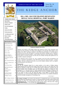 Special points of interest: The KEDGE ANCHOR is the newsletter of The 1805 Club. It is published three times a year (in March, July and November) and is distributed free to members. For information about the newsletter contact the editor Ken Flemming, 132, Slater Lane, Leyland, Preston Lancs PR26 7SE UK , phone +44 (0)1772 302593, email: kenflemming@sky.com . Or the consulting editors: Randy and Dana Mafit at 1980 Sunrise Blvd., Eugene, Oregon 97405, USA, phone +1 541-343-1894, email: randym1805@aol.com Islay del Rey 1 Chairman’s Dispatch 2 Feature contd 4 From the Quarterdeck 9 Profiles 10 Letters tp the Editor 15 Forthcoming Events 17 ‘ An Affectionate Friend ‘ 22 Nelson’s Sailors 30 Book Notes 35 In the Auction Rooms 38 INSIDE THIS ISSUE: Painted Hall Project 8 AGM Members’ Day 9 NA Secty Retires 10 Capt. John Rodgaared 11 Paul A. Ellis 11 Nelson’s Bed 11 Nelson’s Band of Brothers Publication 15 Colin White Memorial Library 15 Jane Austen & The Navy 20 Nelson’s Uniform Goes to Paris 20 Navy Records Online 21 1805 Club Education Program 26 HMS NELSON Catalogue 27 A Nelson Funeral Mourning Sworde 28 Trafalgar Veterans 32 BBC Trafalgar Animation 33 Canadian Shannon Coin 34 Three Captains at Trafalgar 41 THE KEDGE ANCHOR NEWSLETTER OF THE 1805 CLUB Issue No. 36 March 2013 Members and readers of The Kedge Anchor may already be aware of the restoration work which has been on-going at the Royal Naval Hospital on Isla del Rey (King Island) in Port Mahon since 2004. A group of volunteers, both Menorcan and British, are working hard to breathe new life into the old hospital, its grounds and ancillary buildings, and to establish a grand collection of relevant artefacts—naval, medical, historical, artistic and literary. Members of the public are welcome and may visit the islet every Sunday morning when guided tours are available in Spanish and English. In the following article Lorraine Ure, who is familiar with Isla del Rey developments and events, is pleased to tell Members of the 1805 Club a little more about the project. A former seafarer, she lives in Menorca and works as one of the Sunday volunteers and is an Englishspeaking guide for the island tours. Background Isla del Rey (Hospital Island) lies in prime position in the centre of Mahon harbour (approximately half way between the mouth of the port and its end). It is the largest islet, with deep sea channels on either side. It is 41,000 square metres in dimension, crowned by the old Naval hospital, whose foundation stone was laid under the auspices of Admiral Sir John Jennings in 1711. For most of the 18th century, during the British domination of Menorca, the islet was known as ‘Bloody Island (isla sangrieta)’ due to its use as a hospital, and this name is to be found on many of the old maps and charts of Port Mahon. It survived, almost continuously, as a naval and military hospital until 1964, and then was completely abandoned, with the inevitable consequence of it becoming a ruin. - continued page 4 - Fundacion Hospital Isla del Rey. ISLA DEL RAY FOUNDATION RENOVATES ROYAL NAVAL HOSPITAL, PORT MAHON