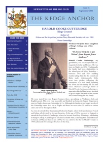 3 Issue 46 – September 2016 THE KEDGE ANCHOR AMA DataSet Limited are pleased to be associated with both The Kedge Anchor and The 1805 Club. AMA DataSet Limited, 5 School Lane, Bamber Bridge, Preston PR5 6QD Telephone 01772 627534 www.ama.uk.com FROM THE EDITOR EDITORIAL CORRECTION In the last issue of The Kedge Anchor dated March 2016, KA 45, page 26 contained a book review of Nelson’s Band of Brothers—Lives and Memorials by Peter Hore. The review was written and had been provided by a Vice President of the Club and professional author Joe Callo. The review was incorrectly identified in KA 45 as a letter that was written to the Club. The book review was in fact originally written by Joe Callo for and published by The Weekly Standard magazine. The book review should have appeared separately at the end of the KA column with a credit “The following article appeared in the November 23, 2015 issue of The Weekly Standard”. We regret this inadvertent error and any embarrassment that may have been caused. In a chance meeting at the Union Jack Club Sandell Street, London I met Peter Gutteridge, not knowing his background. I had long been interested in the Naples period and Peter was giving a lecture there on Nelson’s This is an exciting time for The 1805 Club because after 25 years of activity, which has consolidated its credibility and reputation, the Club like the country, is at a threshold. Your Council has been working to respond to the challenges and opportunities this presents and in addition to the changes to the Trafalgar Chronicle it is investing in a revamp of the website , led by Jo Birtwhistle, which will allow for the long awaited Memorials Log John Curtis has been working on to be published on line. We have also commissioned a feasibility study from Commander Garry Spalton RN rtd on a future strategy for The Trafalgar Way. The 1805 Club is now the official custodian of the Trafalgar Way and we are thrilled that Ride the Trafalgar Way is taking place in October. We shall be presenting The New Trafalgar Dispatch to the winning cyclist of each leg. We are also be looking at ways to help support this splendid event in future years together with many other organisations along the Way who we are approaching to help us raise its profile. Bill White is masterminding this. Hitherto we have fulfilled our charitable objectives in a variety of ad hoc ways but there is now a call for a sustained approach that will build on these achievements and integrate the various corelated elements. The underpinning themes remain conservation and recording, education and the promotion of naval heritage. To have reached this point is a remarkable testament to the devotion of the Council’s teams past and present. Nevertheless, If we are to meet the challenge we need to recruit more talent from the membership to serve on future Councils. We welcome Benedict Ryan this year who has followed in the wake of Geraint Day, Paul Kloss and Stephen Tredidgo. They add to an already great team and I thank them all. In Nelson’s words they are a “fine sett of fellows”! With all good wishes, Yours aye, Peter Warwick, Chairman Please note the next edition is due in March. The deadline for copy will therefore be 21 February 2017. We will be pleased to receive your ideas and contributions at an early date. controversial involvement in Naples during 1799. I had in my possession a copy of Naples 1799 by Constance H D Giglioli 1903. This copy was by chance his grandfathers and contained his bookplate and personal inscription. I had acquired it some 30 years previously and having studied it at length felt it should be returned to the family. In return Peter Gutteridge introduced me to his grandfather, a figure I had long wished to meet. Harold Cooke Gutteridge and Sir John Knox Laughton achieved indelible material on this period of naval history, their involvement in researching and presenting the known facts cannot be underestimated. You will see in the notes I have used the expression ‘they set my feet dancing’ that is the pure joy of reading, in context, their combined research; masterfully presented by Andrew Lambert. The country’s leading Naval Historian. In a three part series entitled a ‘Sixty Second Interview’ it is planned to introduce members who have particular skills to the membership. While the first subject by naval author and Trafalgar Chronical editor Peter Hore is not of the era or even of naval interest. It is chosen because the research depth and method is extraordinarily sharp which demonstrates the ability to promote and present original research. The second in the series will highlight the work of Marine Artist and life member Christer Hägg Captain RSwN (Ret). I would like to thank Chairman Peter Warwick for his long and interested involvement in the Club. Peter came in the early days of its formation seeking only to become involved in what he recognised as a young Club with big ideas, and importantly it was doing something that would be achievable. He immediately brought a can do and high energy attitude coupled with a friendliness. When he became chairman, taking over from the late Colin White, Colin said “I am looking forward in seeing were he takes us, it will be interesting”. Well it has been interesting the Club has moved forward and continues to achieve under the guidance of its chairman. If any member wishes to receive their copy of The Kedge Anchor electronically please contact the Membership Secretary Barry Scrutton at barry@scrutton estates.co.uk. If you prefer this method you will not receive a hard copy. The obvious advantages are you will receive a copy as soon as it goes to print approximately 3 weeks ahead of members receiving it by post. You may revert back to hard copy at a later date if wished. Kenneth Flemming