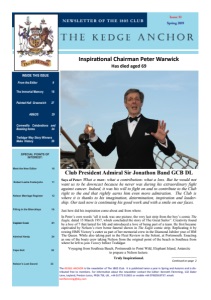 2 THE KEDGE ANCHOR Issue 51— Spring 2019 Educated at Pattinson College and Woodlands Comprehensive (now West Coventry Academy), Coventry, he read economics at Hull 1968-71 and, part-time, for a masters at Birkbeck 1972-75 on the impact of transport rationalisation on land values. His history was self-taught. Warwick was diverted from his intention of joining the Royal Navy for a short service commission by the offer of a job as personal assistant to the left-wing politician and entrepreneur T. Dan Smith. Smith gave Warwick great responsibility, while Warwick learned to network through dealing with Smith’s contacts who were as varied as the union-leader Vic Feather, the musician Yehudi Menuhin, and the then Foreign Secretary George Brown. His specific responsibilities included finding greenfield sites for motorway service stations and the planning application for Sullom Voe oil terminal. Though he believed he knew Smith’s business intimately, he was surprised not to be interviewed by the police after Smith’s arrest on corruption charges and remained convinced that Smith had been made a scapegoat by the establishment. In 1974-85 Warwick joined Legal & General’s investment planning team, ending as head of property research: projects included Landsdowne House and Leadenhall Market. His interests were never numbers, however, but people and while lent to a charity, Action Resource Centre 1985-88, he gained new qualifications in public relations, returning to L&G as business development manager 1988-91 and marketing director 1991-96. Warwick enjoyed champagne and fast cars, but the business world was changing around him and becoming less fun, and in 1995 he set up as a freelance consultant in marketing and communications, initially enjoying some success with Middle Eastern clients. This also enabled him to give more attention to his teenage son, Tom, and gradually, with a variable income, his life-style became more abstemious. He had already been known to put clients and junior colleagues at ease by descriptions, often using the cutlery, of Nelson’s battles, and now with downtime between commissions he was able to give full reign to his enthusiasm for his hero, Nelson. Warwick dated his obsession to 15 March 1957 when, aged 7, he read the last episode of ‘The Life of the Great Sailor’ in The Eagle, and experienced “a quasi-spiritual moment, like a hot knife going through butter”. Over the next 40 years he built a library about Nelson and collected artefacts related to him, but it was not until the 1990s, while showing friends round the Nelson exhiPeter Terence Warwick Was born on 20 December 1949 in Kenilworth where his father was a pioneer aero-engineer who worked with Frank Whittle and on jets from the Gloster Meteor Mk 1 to Concorde. HMS Victory Cutter at King’s Stairs Greenwich during the Emirates Thames Nelson Flotilla, 16 September 2005. Chairman Peter Warwick standing right wears a full dress replica naval captain’s uniform, and Alex Price, as John Richards Lapenotiere between the tossed oars wears a replica lieutenant’s uniform, both made by Keith Levitt at Henry Poole & Co, Savile Row.