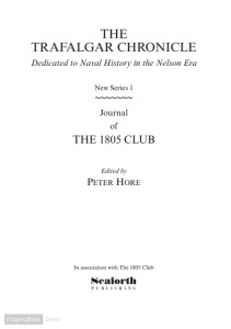 THE TRAFALGAR CHRONICLE Dedicated to Naval History in the Nelson Era New Series 1 ~~~~~~~ Journal of THE 1805 CLUB Editedby PETERHORE In association with The 1805 Club